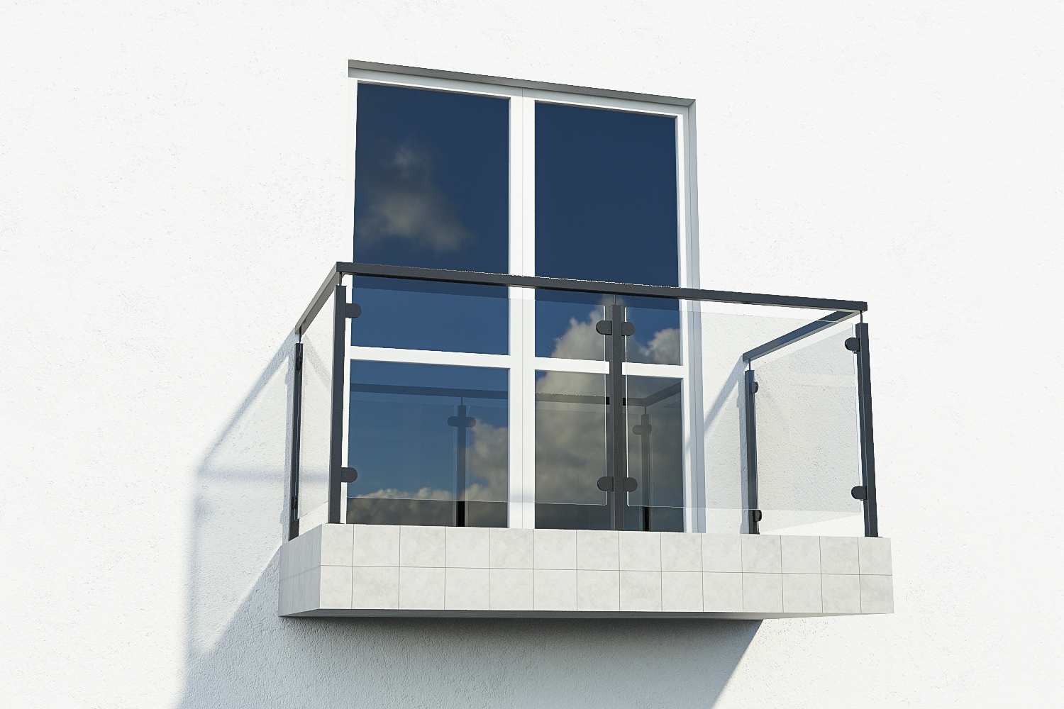 Стеклянные ограждения для балкона с черного металла порошковая покраска по RAL